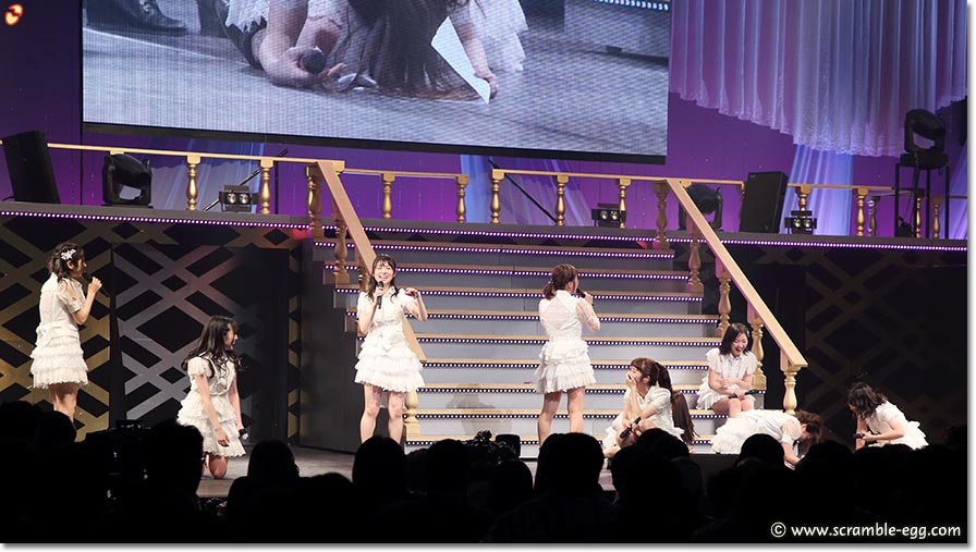 この曲ではスクリーンには13期生のヒストリー映像が流れていました。その場にいないとMC部分のニュアンスは伝わらないかもしれませんが、ここのパートはいろんな意味で13期らしさがたっぷりと現れた部分でした。次はアンコールです。あとしばらくおつきあいください。(撮影・取材 岡田)